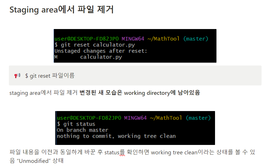 +) git reset은 협업에서 많이 사용하지 않음! (다시 돌아가기 어렵기 때문에) 그래서 github처럼 remote repository에서 다른 사람과 협업을 할 시에는 git revert를 사용해야 함을 기억해야한다.
